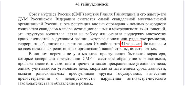 Справедливость данных слов подтверждается не только и не столько тесными связями гайнутдиновцев с Турцией и зарубежными исламскими центрами, сколько наличием в рядах ДУМ РФ запредельного числа экстремистов.
