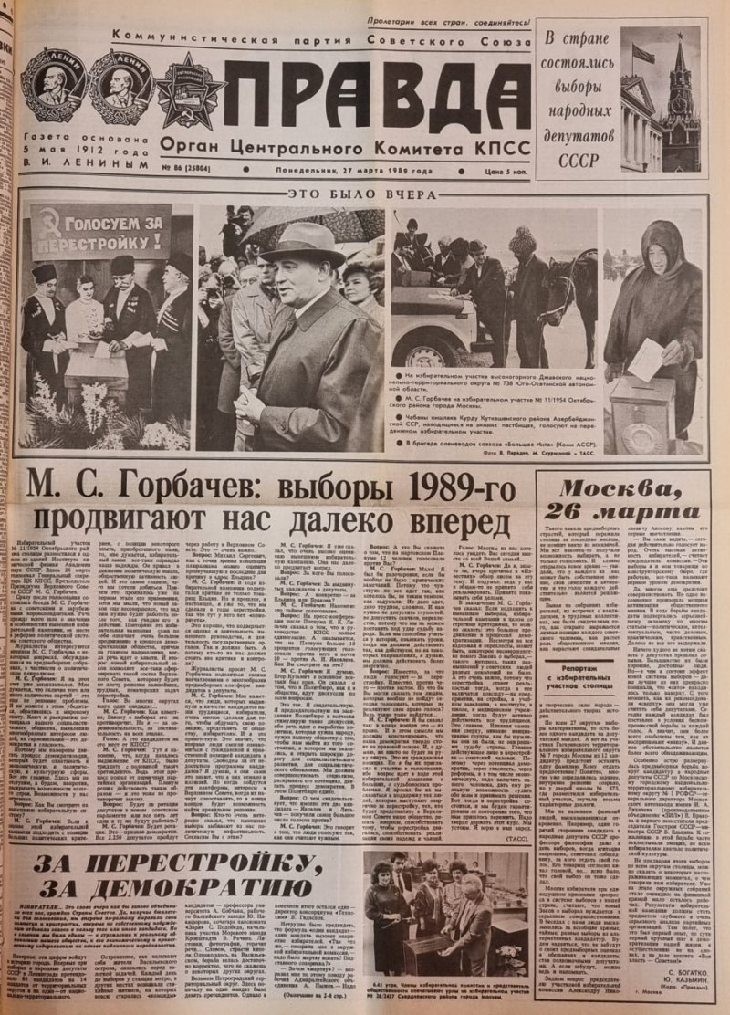 26 марта — памятный день в истории страны. 35 лет назад впервые состоялись выборы народных депутатов СССР на альтернативной основе. Мы решили вспомнить, как это было, и пробежаться глазами по заголовкам газет от 26 марта 1989 года.