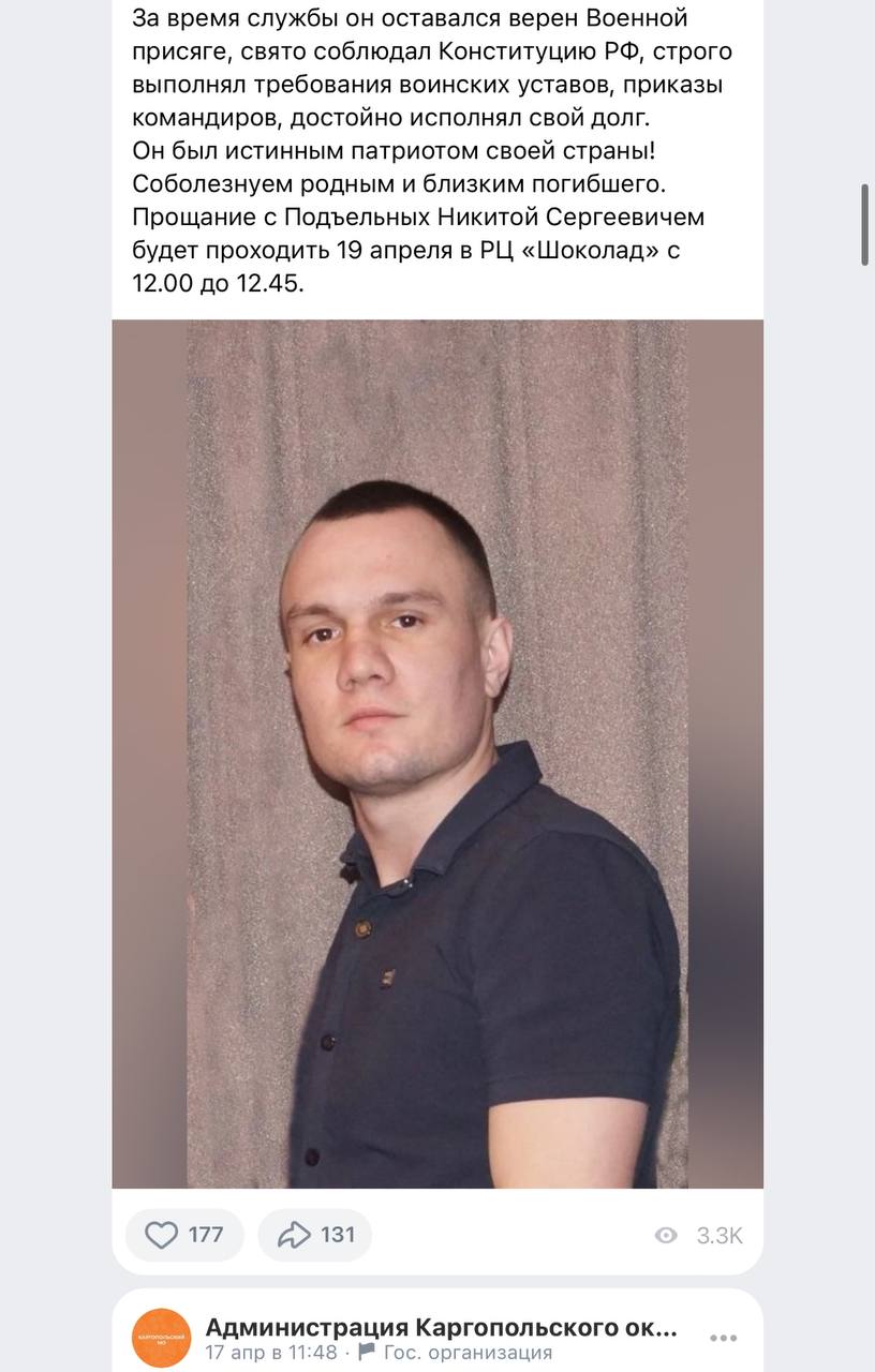 В зоне спецоперации погиб доброволец из Архангельской области Подъельных Никита Сергеевич. В пятницу, 19 апреля, в Карпогорском районе прошло прощание с героем. Об этом сообщили в окружной администрации.