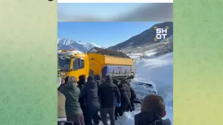 Сотни машин застряли на КПП "Верхний Ларс", где из-за мощного снегопада полностью остановлено движение.