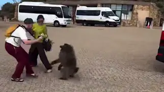 Бабуин напал на русских туристов в Южно-Африканской республике и хотел отобрать мороженое с чипсами.